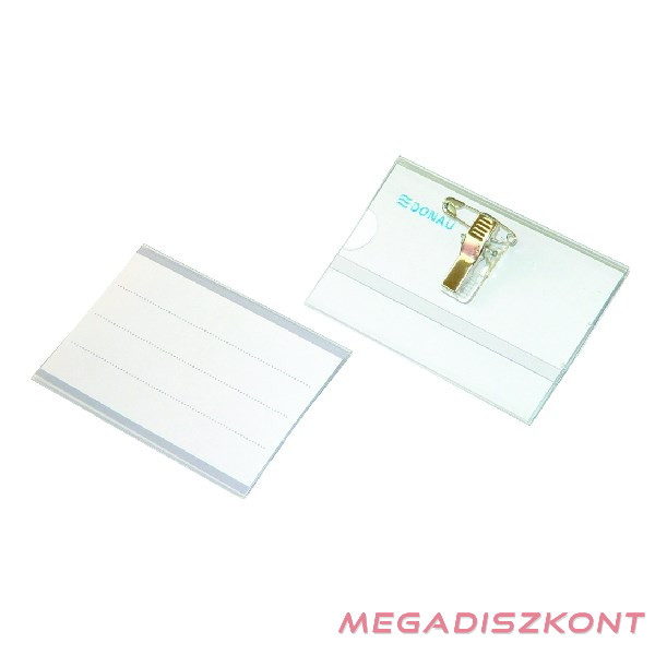 Kártya tartó csipesszel és biztosítótűvel a hátulján, átlátszó műanyagból. A hátulján lévő ovális ujjnyílás megkönnyíti a kártya kivételét, cseréjét.
