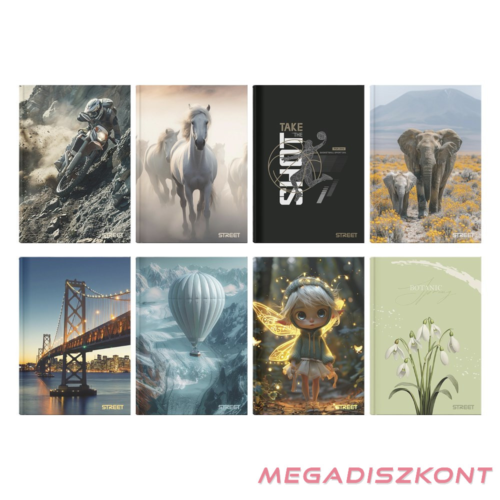 Kemény borítású fényes laminálású különböző mintás S-Line 2 A/4 100 lapos vonalas füzet, vegyes mintákkal/csomag.