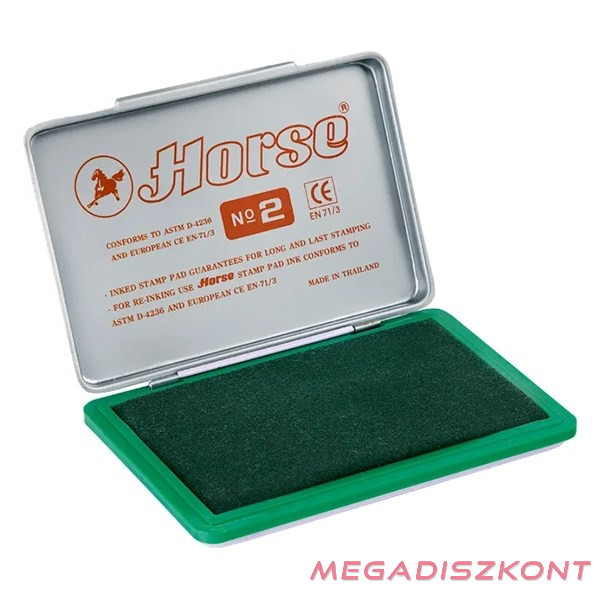 Kézi bélyegzőkhöz használatos 110x70 mm (Nr. 2) zöld, műanyag és fém házas bélyegzőpárna.