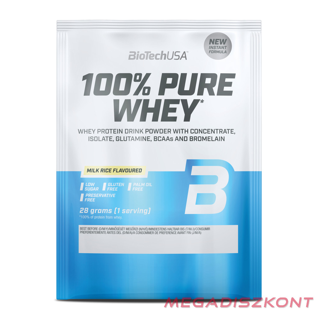 BioTech fehérjepor 100% Pure Whey 28g - tejberizs (50 db/#)
