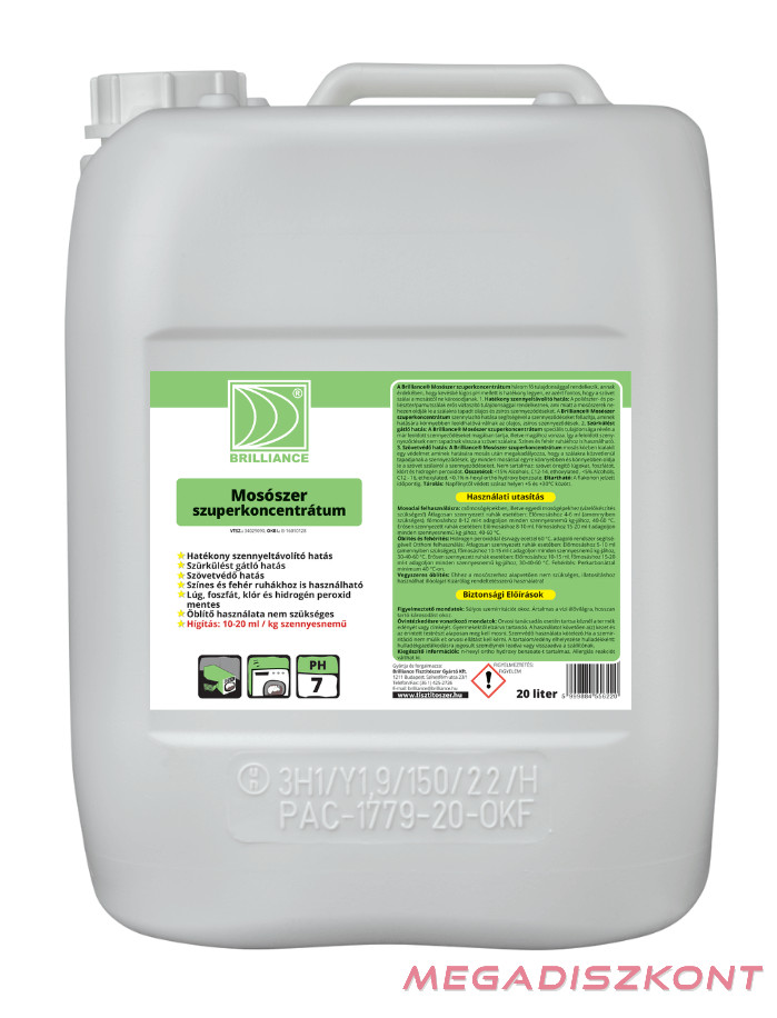 - Hígítás: 10-20 ml / kg szennyesnemű