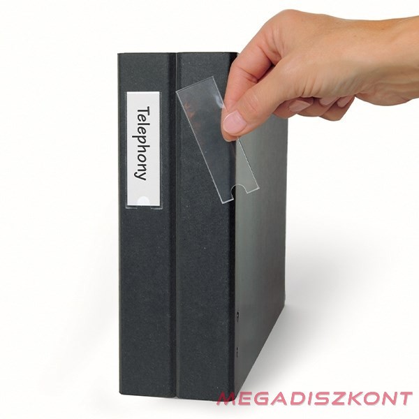 Praktikus, átlátszó, öntapadó, gerincjelölő címketartó tok iratrendezők-, gyűrűskönyvek-, iratgyűjtő mappák-, iratpapucsok gerinceinek jelölésére.