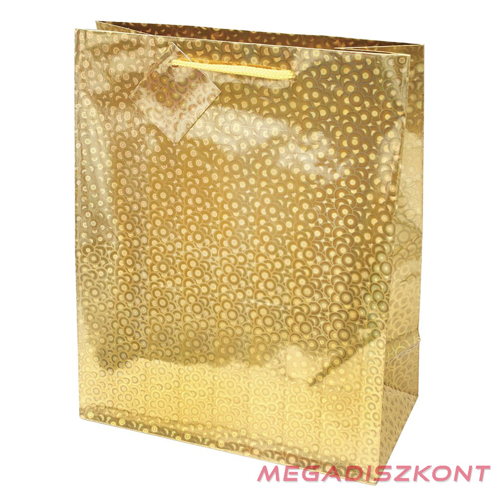 Papír ajándék dísztasak, speciális hologrammal, sodrott füllel.