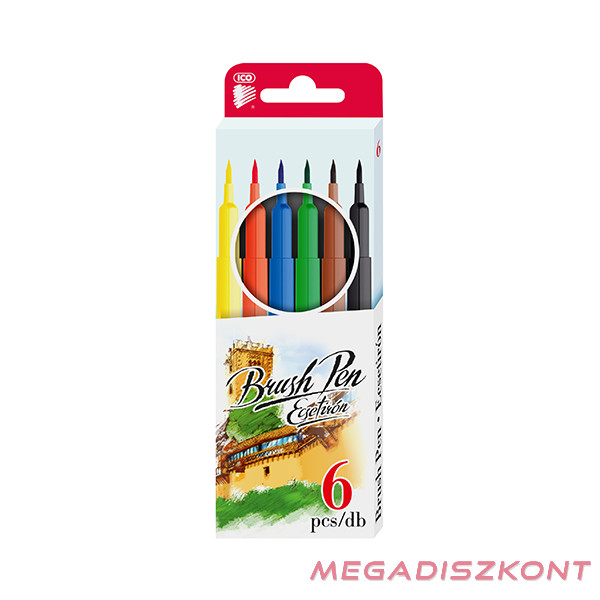 Ecset jellegű, hajlékony írócsúccsal ellátott rostirón, rajzolásra, nagyobb felületek színezésére. 6 féle élénk színben.