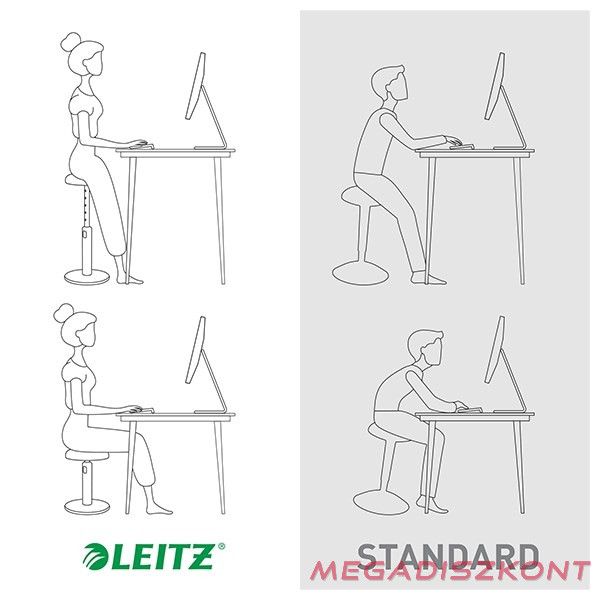 Ergonomikus ülő-álló szék lehetővé teszi a rugalmasságot az ülés és az állás közötti munkavégzés közben, ösztönzi az izommozgást, javítja a testtartást és növeli az energiaszintet.Lélegző,3D léghálóval borított habszivacscsúszásmentes talp,maximális tehetbírás: 110 kg.