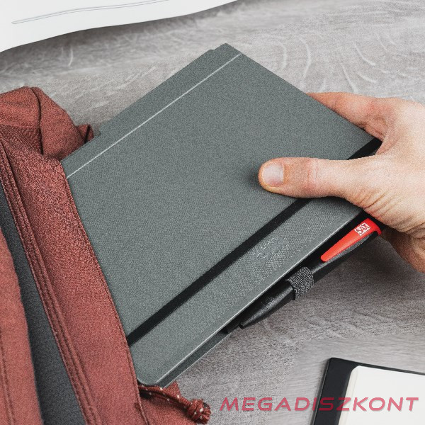 A/5 méretre összehajtható, A/4 méretre kihajtható, rugalmas rögzítőpánttal, tolltartóval felszerelt irattartó. Vízszintesen és függőlegesen is használható, 30 lapig.