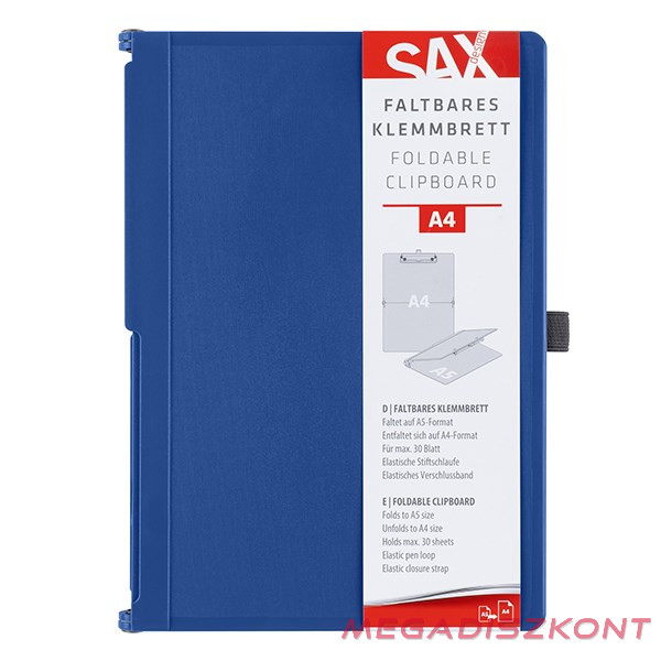 A/5 méretre összehajtható, A/4 méretre kihajtható, rugalmas rögzítőpánttal, tolltartóval felszerelt irattartó. Vízszintesen és függőlegesen is használható, 30 lapig.