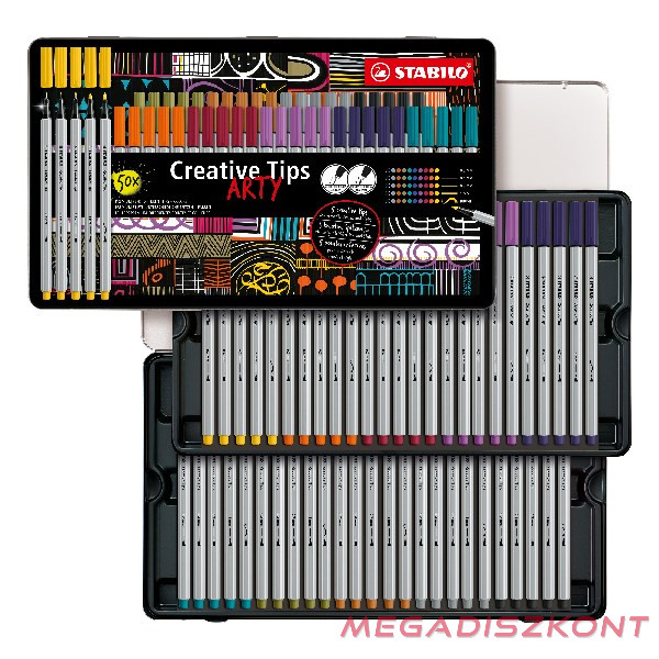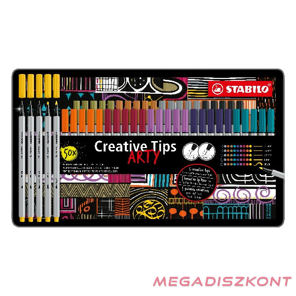 Egy új kreatív eszköz íráshoz, rajzoláshoz, akvarellhez, betűíráshoz és vázlatkészítéshez. Ezért a STABILO legjobb filctollait új hegytípusokkal kombináljuk. Ezeket a STABILO kreatív hegytípusokat tökéletesen kombinált színválasztékban kínáljuk. A színek és a vízbázisú tinták ugyanazok, mint a Pen 68, Pen 68 brush, point 88 és a pointMax esetében. Kreatív hegytípusainkkal tökéletesen játszhat a különböző vonalszélességekkel, így ugyanaz a technika másképpen néz ki és más hatásokat hoz létre.