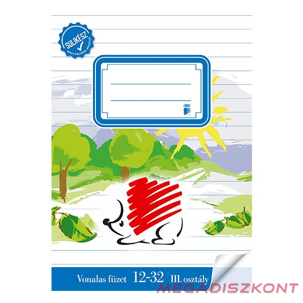 A5-ös méretű, „SULIKÉSZ”, matt fóliával bekötött fűzött füzetek, 32 lap, 8 féle kivitel: vonalas (1.o., 2.o., 3.o., 4.o.), négyzethálós, sima, szótárfüzet, hangjegyfüzet.