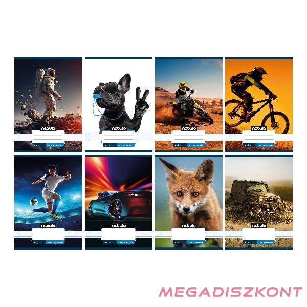 A/5-ös tűzött iskolai füzet 3. osztályos vonalazással, 32 lapos (12-32). 16 db füzet (8 különböző vagány minta, azaz 2db/minta) van egy csomagban. 70 g-os füzetlapok és 200 g-os műnyomó borító fényes fóliával.