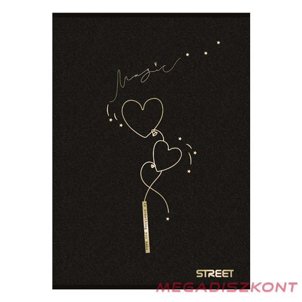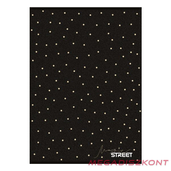 Fekete matt alapon fényes arany mintás, karton borítású, A/5 méretű, 54 lapos, vonalas füzet.