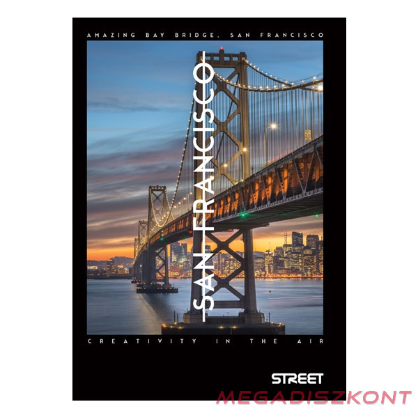 Városok híres hidaival ellátott fényes, karton borítású, A/5 méretű, 50 lapos, vonalas füzet.