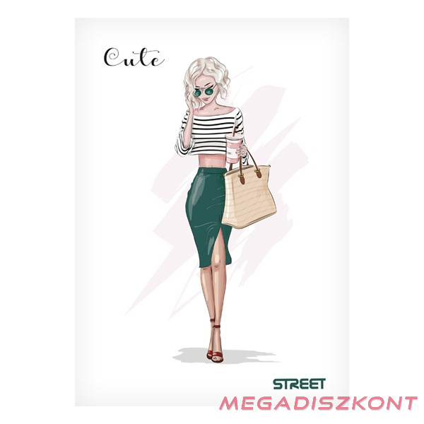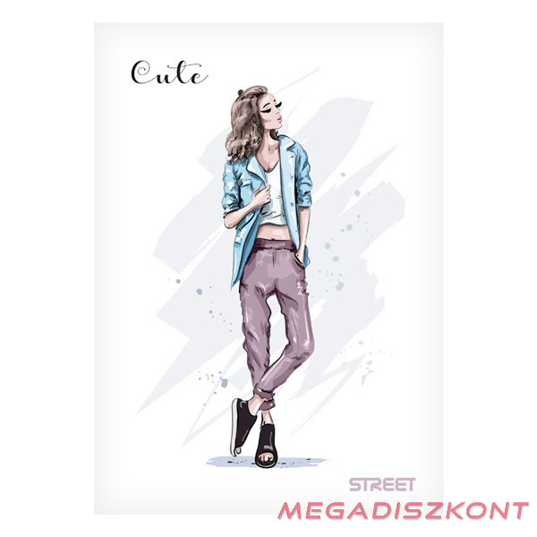 Színes, lányos mintás, fényes karton borítású, A/5 méretű, 54 lapos, vonalas füzet.