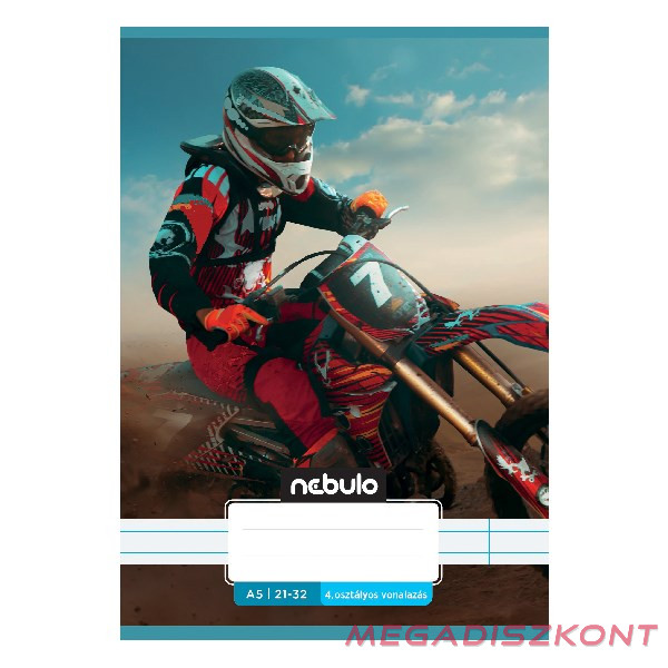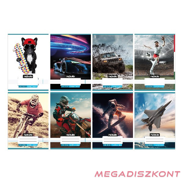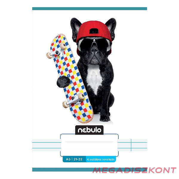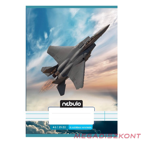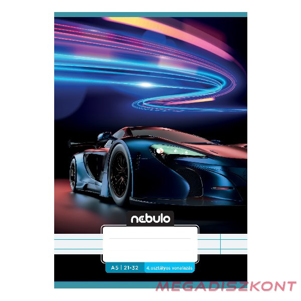 A/5-ös tűzött iskolai füzet 4. osztályos vonalazással, 32 lapos (21-32). 16 db füzet (8 különböző vagány minta, azaz 2db/minta) van egy csomagban. 70 g-os füzetlapok és 200 g-os műnyomó borító fényes fóliával.