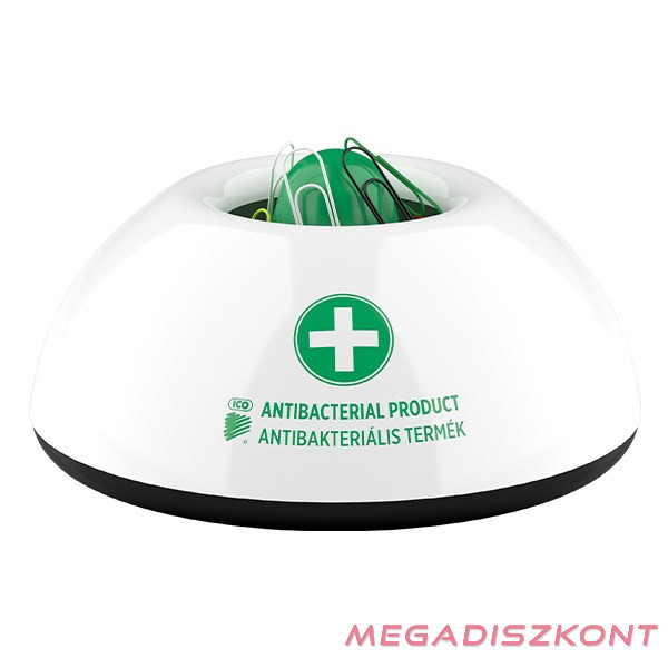 Antibakteriális gemkapocstartó. A műanyag alkatrészek antibakteriális védelmet adó Biomaster ezüst-ionokat tartalmaznak (biocid hatóanyag: ezüst-foszfát üveg). Az ICO Antibakteriális termékei bizonyítottan baktériumölő tulajdonsággal rendelkeznek, a felszínen megtelepedett kórokozók 24 óra leforgása alatt, 99,9% hatékonysággal elpusztulnak. Az antibakteriális hatást az angliai Industrial Microbiological Services Ltd. bevizsgálta és igazolta.
