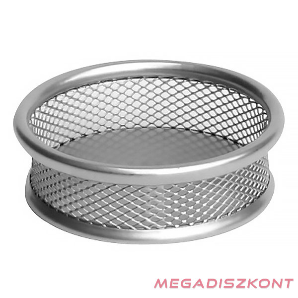 Fémhálós, ezüst, kerek gémkapocs tartó. Irodai és otthoni használatra egyaránt alkalmas.