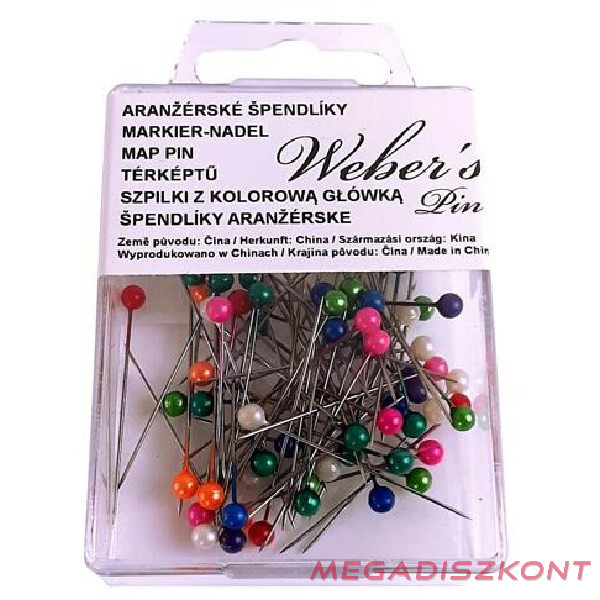 Gombostű WEBER'S műanyag dobozban színes fejjel