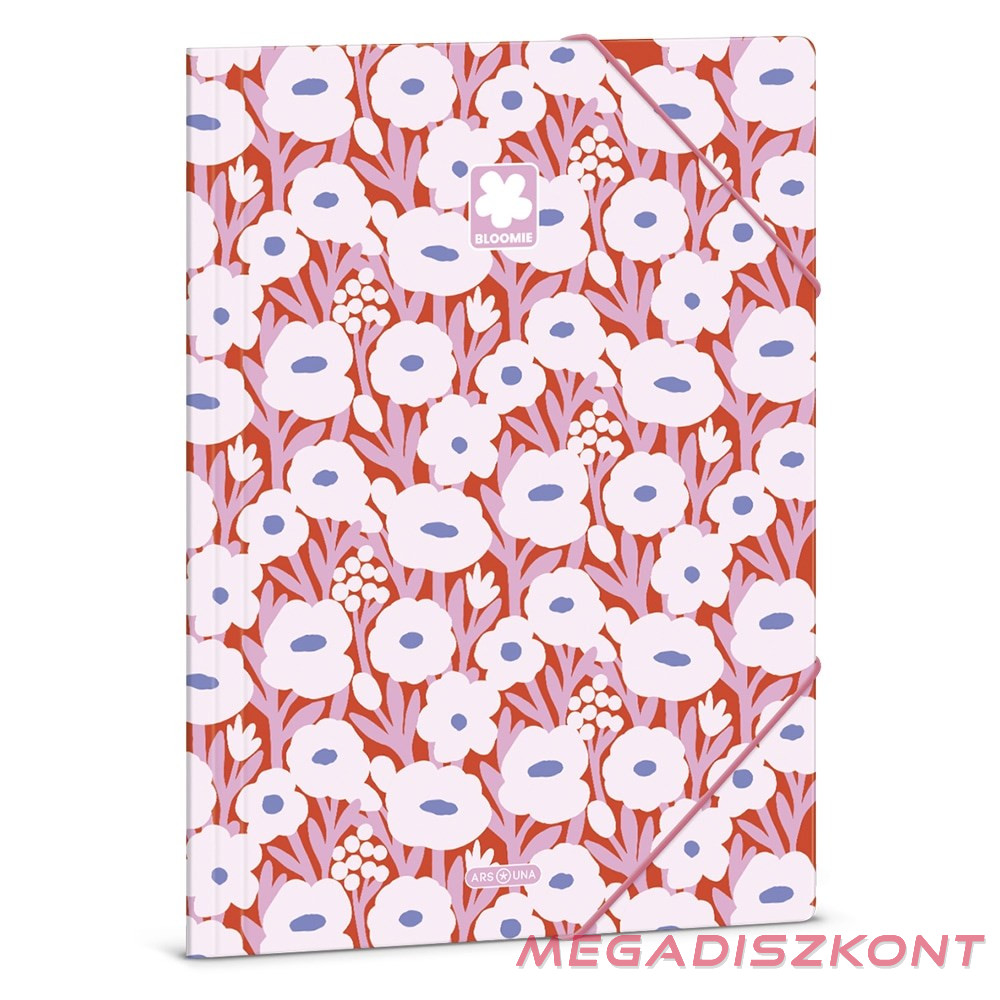 A/4 méretű gumis dosszié iratok, füzetek tárolására. 350 gr-os vastag kartonból készült dosszié lekerekített első sarkokkal, színes gumi zárópánttal. Külseje négy színnel, fényes fóliával nyomott. Belső oldala nyomatlan.