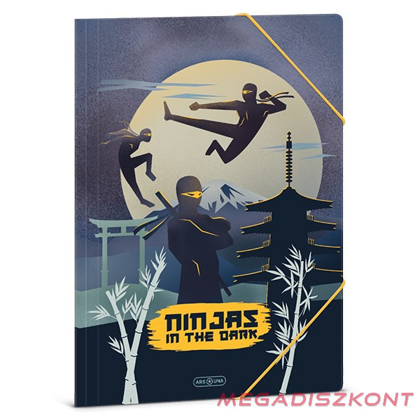 A/4 méretű gumis dosszié iratok, füzetek tárolására. 350 gr-os vastag kartonból készült dosszié lekerekített első sarkokkal, színes gumi zárópánttal. Külseje négy színnel, fényes fóliával nyomott. Belső oldala nyomatlan.