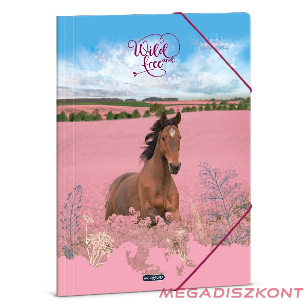 A/4 méretű gumis dosszié iratok, füzetek tárolására. 350 gr-os vastag kartonból készült dosszié lekerekített első sarkokkal, színes gumi zárópánttal. Külseje négy színnel, fényes fóliával nyomott. Belső oldala nyomatlan.