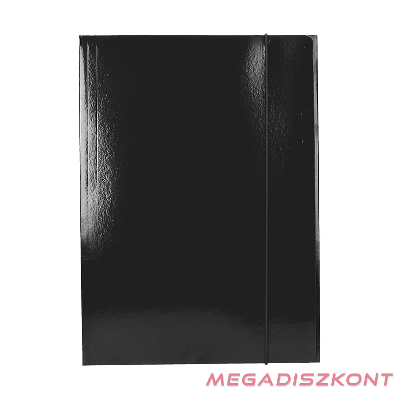 600 grammos kartonból készült,kívül vidám színekre lakkozott, belül a borítóval azonos színű , gumis mappa 3 pólyával, hosszanti oldalán gumiszalaggal ellátva. A gumiszalag színe megegyezik a mappa színével. Kisebb mennyiségű papír lefűzésére alkalmas.