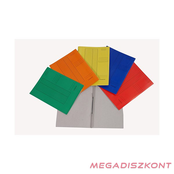 Belül natúr, kívül egyszínű, színes, 230 gr-os kartonból készült gyorsfűző mappa, elején feliratozásra alkalmas nyomattal. A mappában elhelyezett lapok lyukasztás után a fémlefűző szerkezettel rögzíthetők. Kisebb mennyiségű irat tárolására alkalmas.
