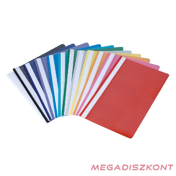 Klasszikus PP gyorsfűző dokumentumok nyilvántartásához átlátszó, narancsos fedlappal, színes hátlappal, kivehető, kétoldalas, feliratozható oldalcsíkkal.
