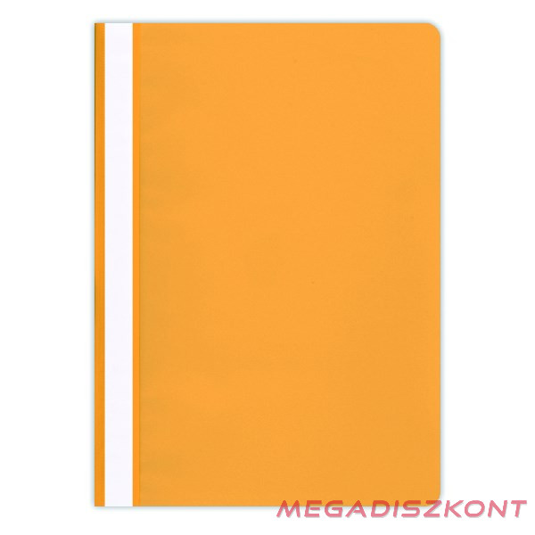 Klasszikus PP gyorsfűző dokumentumok nyilvántartásához átlátszó, narancsos fedlappal, színes hátlappal, kivehető, kétoldalas, feliratozható oldalcsíkkal.