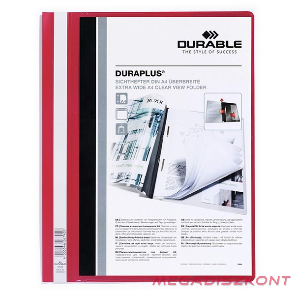 Gyorsfűző DURABLE Duraplus A/4 széles panorámás piros