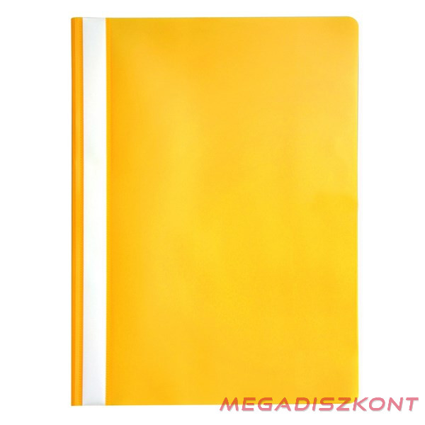 Műanyag anyagú, narancsos előlappal és színes, hajlékony hátlappal ellátott, cserélhető címke tárolós gyorsfűző mappa. A gyorsfűzőket kevés lapszámú irat lyukasztás utáni lefűzésére és védelmére ajánljuk.