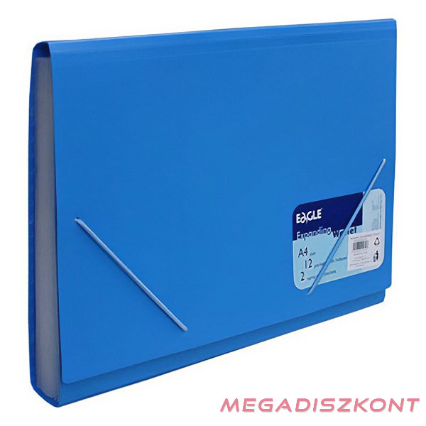 Műanyag, egyszínű irattartó mappa 12 tárolórekesszel, gumis záródású. Gerinc szélessége maximum 30mm.