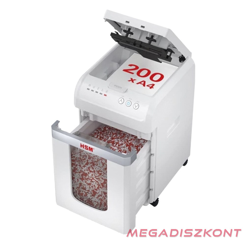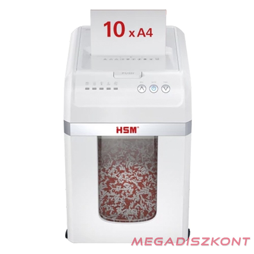 Belépőszintű, automata lapadagolós iratmegsemmisítő, magas biztonsági fokozattal, egyéni/irodai használatra, 10/200 lapos kapacitással, bankkártya aprítási lehetőséggel. Automatikus indítás/leállás, visszaforgatási funkció, tele konténer jelzés.