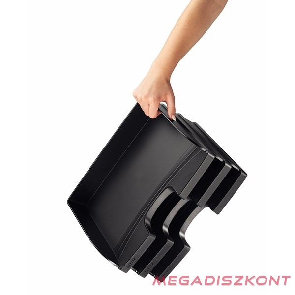 Robosztus, oldalt nyitott irattálca. Tervezése és színvilága illik a Leitz Plus termékcsalád többi tagjához. Egymásra helyezhető a Leitz Plus jumbo oldalt nyitott irattálcákkal.
