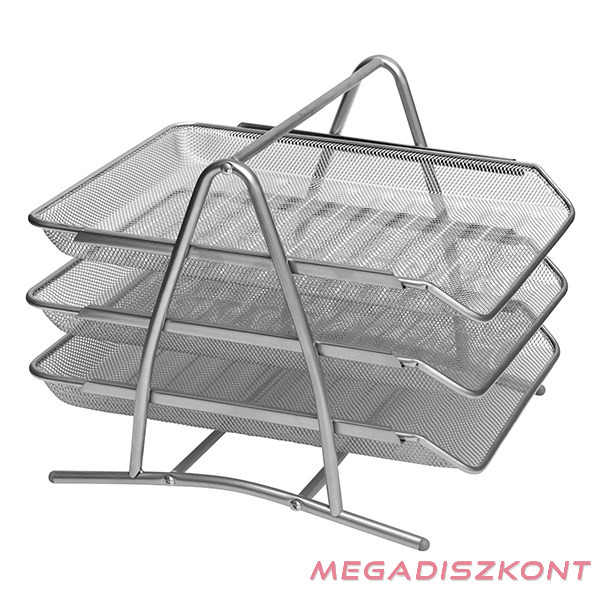 Fémhálós kivitelű háromszintes irattartó tálca, A/4 -es méretű iratok tárolására. Színek: fekete, ezüst.