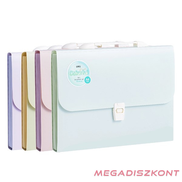 Rendszerezze és tárolja fontos dokumentumait a harmonika irattáskában. Ergonomikus fogantyú, feliratozható-különálló 13 rekeszes, A/4 méretű dokumentumok tárolására COLORFUL pasztell vegyes színekben: kék, lila, rózsaszín, zöld