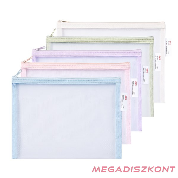 A/5 méretű dokumentumok tárolására. Anyaga 330 mikron PE , fémcipzár záródás, szövetéllel. Átlátszó, COLORFUL pasztell vegyes színekben: kék, lila, rózsaszín, zöld