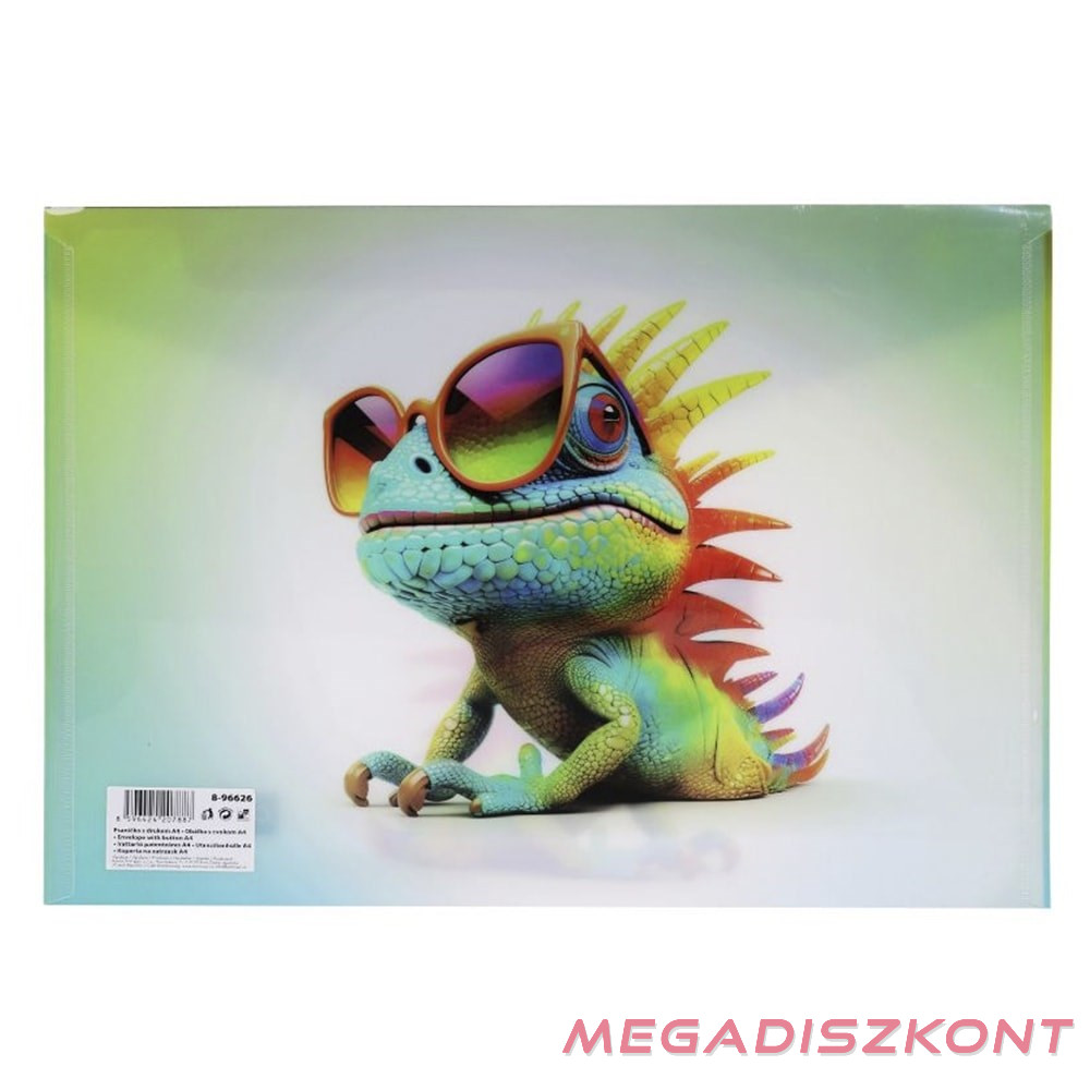 Vidám mintájú borítékos mappa. Tartós, 200 mikron vastag polipropilénből készült, amely megvédi a tartalmat a sérülésektől. Praktikus patentos záródása biztonságos tárolást nyújt. Ideális A4-es munkalapok, valamint kisebb eszközök (például vonalzó) szállítására és rendszerezésére. Tökéletes kiegészítő minden kisiskolás számára.