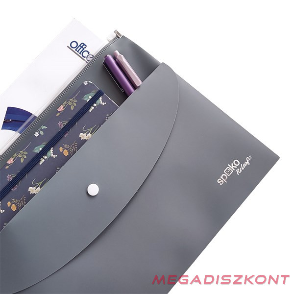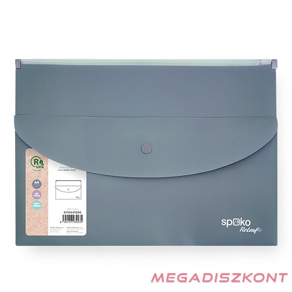 A tárolózsebbel ellátott kombinált irattartó tasak ideális kisebb dokumentumok és apró tárgyak tárolására. Nagyobb zsebe cipzárral záródik, hogy megvédje a benne lévő tartalmat. A kisebb elülső zseb a tasak színével harmonizáló patenttal van ellátva. Formátuma: A/4. Anyaga: 100% újrahasznosított PP, 230 qm. Méretei: 33 x 24,5 cm. SoftTouch felület. Global Recycled Standard tanúsítvány