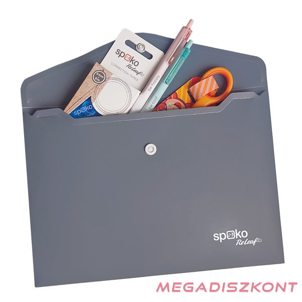 Praktikus, nem átlátszó irattartó tasak, mely különböző dokumentumok tárolására és hordására alkalmas. A könnyen zárható patent a tasak színével harmonizál. Formátuma: A5. Anyaga: 100% újrahasznosított PP, 230 µm. Méretei: 24 × 17 cm. SoftTouch felület. Global Recycled Standard tanúsítvány.