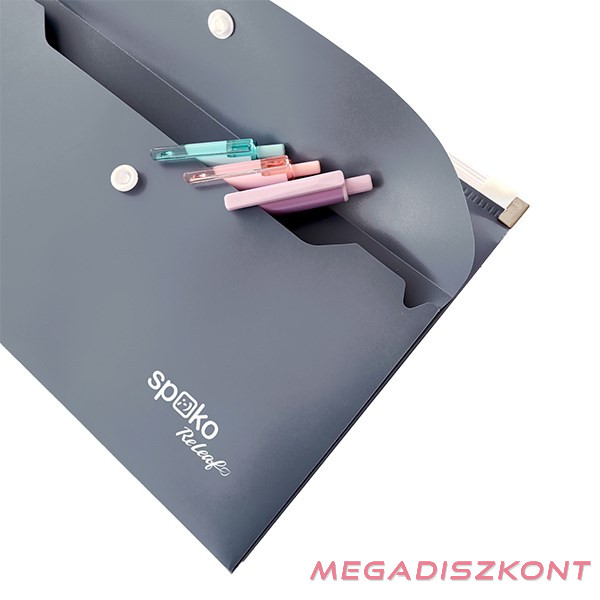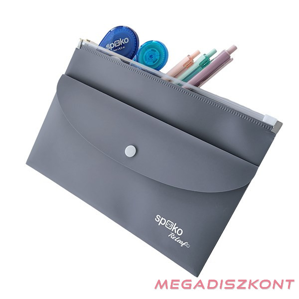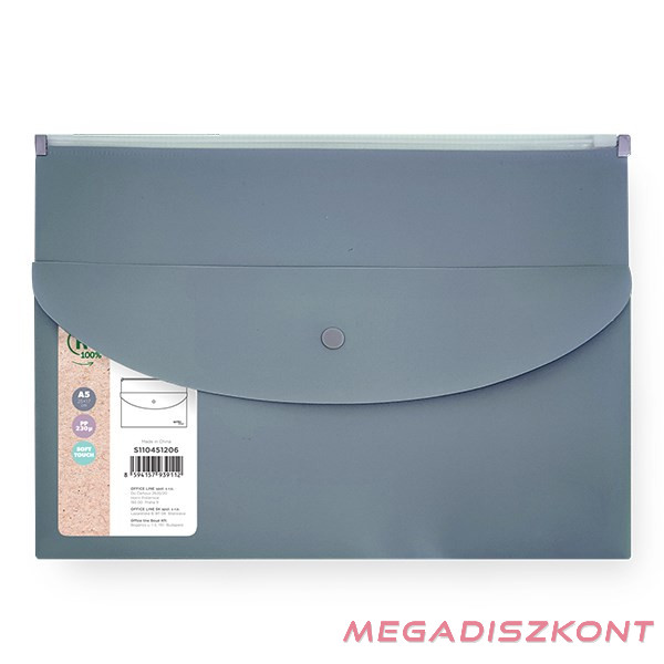 A tárolózsebbel ellátott kombinált irattartó tasak ideális kisebb dokumentumok és apró tárgyak tárolására. Nagyobb zsebe cipzárral záródik, hogy megvédje a benne lévő tartalmat. A kisebb elülső zseb a tasak színével harmonizáló patenttal van ellátva. Formátuma: A/5. Anyaga: 100% újrahasznosított PP, 230 qm. Méretei: 25 x 17 cm. SoftTouch felület. Global Recycled Standard tanúsítvány