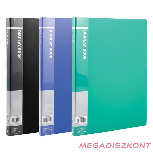 Szórólapok, árlisták, ajánlatok átadására, tárolására. 180°-ban nyitható. Anyaga PP. 20 zsebes változat, vegyes színekben: kék-zöld-fekete
