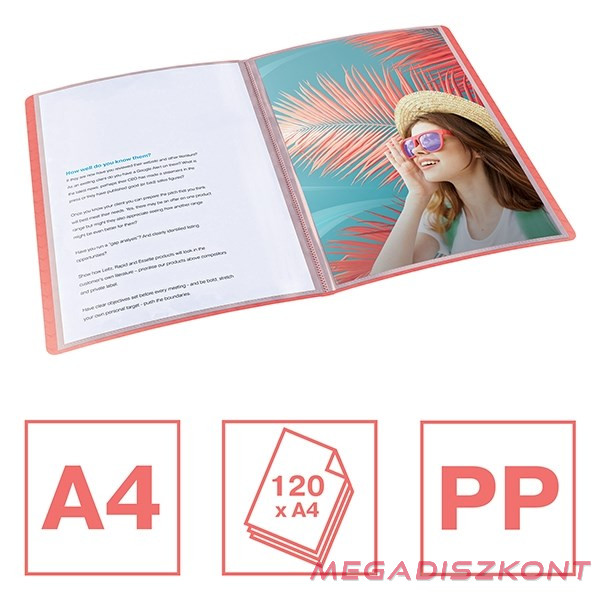 Fedezze fel a természet élénk színeit és teremtsen pozitív munkakörnyezetet az Esselte Colour'Breeze termékcsaláddal. Segít a rendszerezésben és a motiváció fenntartásában a munka vagy tanulás során. Az Esselte Colour'Breeze iratvédő mappa egy könnyű, műanyagból készült, A4 méretű tasakokkal rendelkező mappa, amely tökéletes jegyzetek, dokumentumok tárolásához otthon vagy az iskolában. Ez az iratgyűjtő mappa 60 savmentes és másolásbiztos alapanyagú, akár 120 lap (80 g/m2) tárolására is alkalmas műanyag tasakkal, valamint a mappa tartalmának jelölését biztosító gerinccímkével rendelkezik. Élénk színválasztékban, friss és modern Colour'Breeze dombornyomott mintázattal. Colour'Breeze - a frissesség szele.