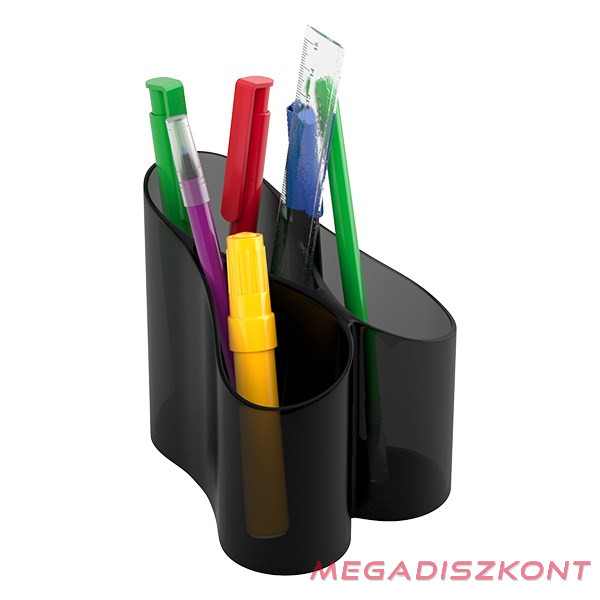 Transzparens fekete, műanyag, hullám kialakítású, 3 rekeszes írószertartó.