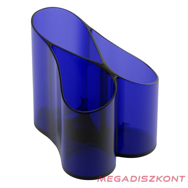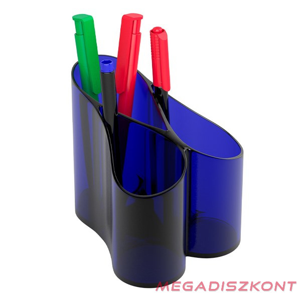 Transzparens kék, műanyag, hullám kialakítású, 3 rekeszes írószertartó.