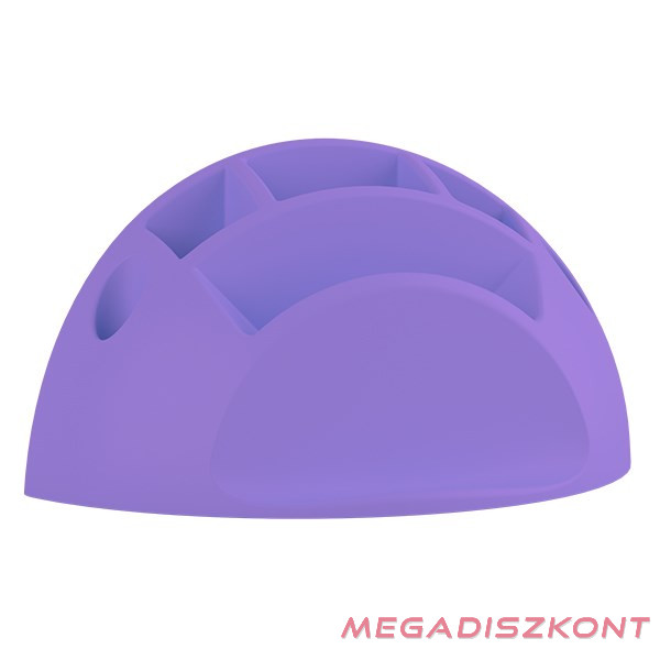 Formatervezett, műanyag testű, hat rekeszes, különféle méretű jegyzettömbök tartására alkalmas asztali jegyzettömb- és írószertartó.