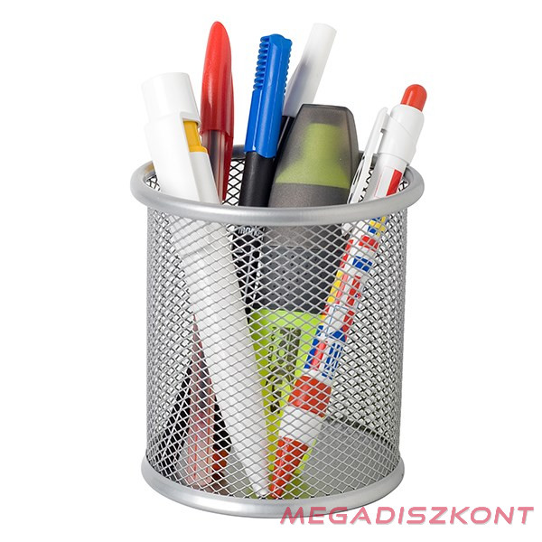 Fémhálós, ezüst, kerek írószertartó pohár. Irodai és otthoni használatra egyaránt alkalmas.