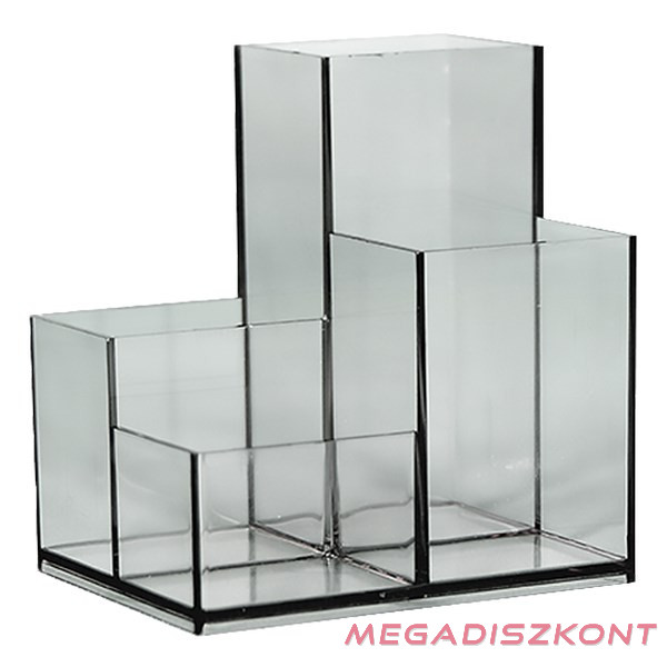 Átlátszó műanyag, szögletes, 4 rekeszes írószertartó.