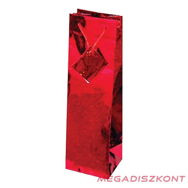 Papír ajándék italtasak, hologrammos, Egyszínű piros sodort füles.