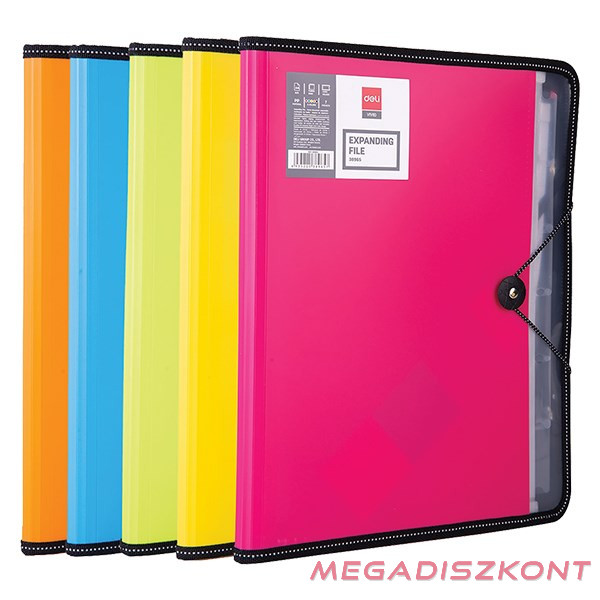Sokoldalú rendező, amely ötvözi a stílust és a funkcionalitást. Anyaga PP, 7 rekeszes, RIO vegyes színekben: kék-zöld-vörös-sárga-narancs. A rugalmas zsinórzár biztosítja a biztonságos tárolást, míg a 30 oldalas A/4-es jegyzettömb további kényelmet biztosít.