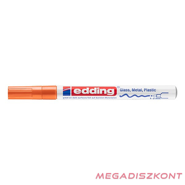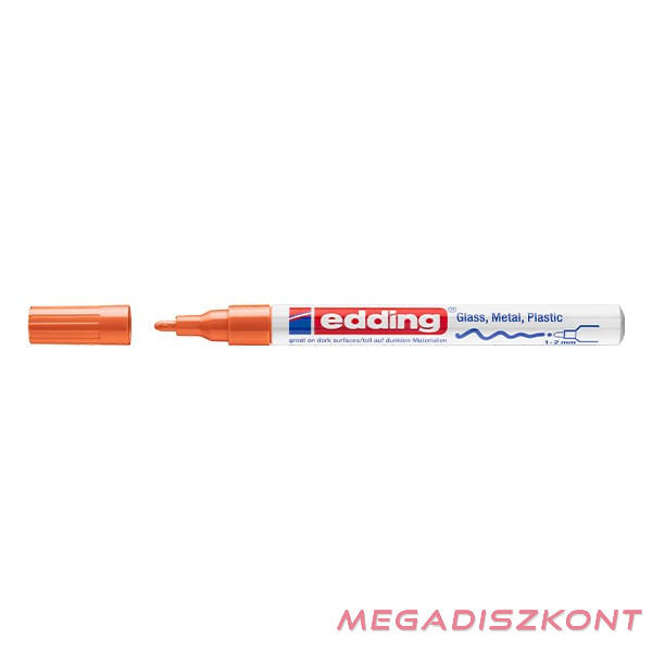 Üveg, porcelán, műanyag, fém, szinte minden felület feliratozására, jelölésére alkalmas, különösen ajánlott szennyezett felületekhez, lakk- és dekorációs fémtestű marker. Kerekített csúcs, fémtest, permanent, lakkszerűen fedő festékkel töltve. Gyorsan száradó festék, írásképe törlés- és vízálló, magas fény- hő- és törlésálló. Festékadagolása egyenletes, szelep vezérli, pótcsúcsolható (EDDDING 751 N írócsúcs). Vonalvastagság: 1-2 mm.